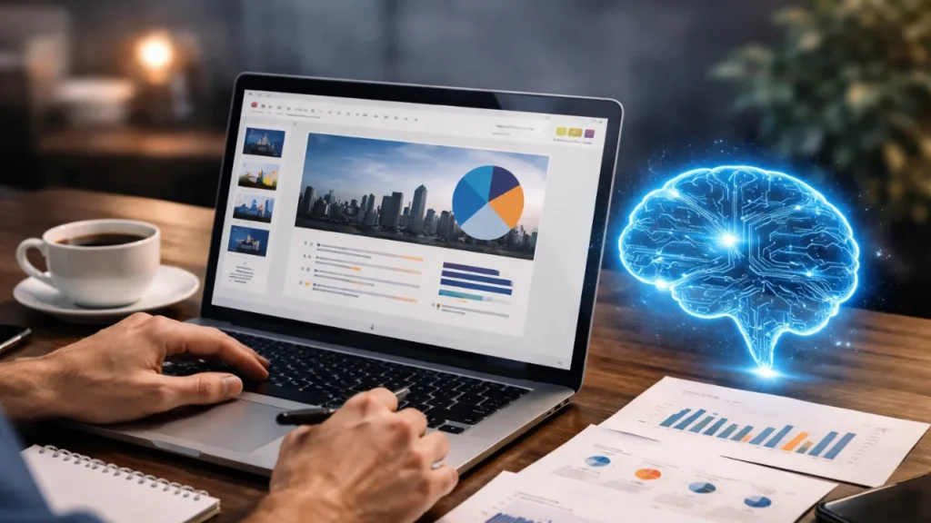 Primero, interpreta lo que escribes. No necesita instrucciones perfectas. Puedes darle algo tan simple como: “presentación sobre estrategias SEO para principiantes” y la IA entiende el contexto, identifica los puntos clave y propone una narrativa lógica. Aquí entra el procesamiento de lenguaje natural, que convierte texto humano en estructura útil.